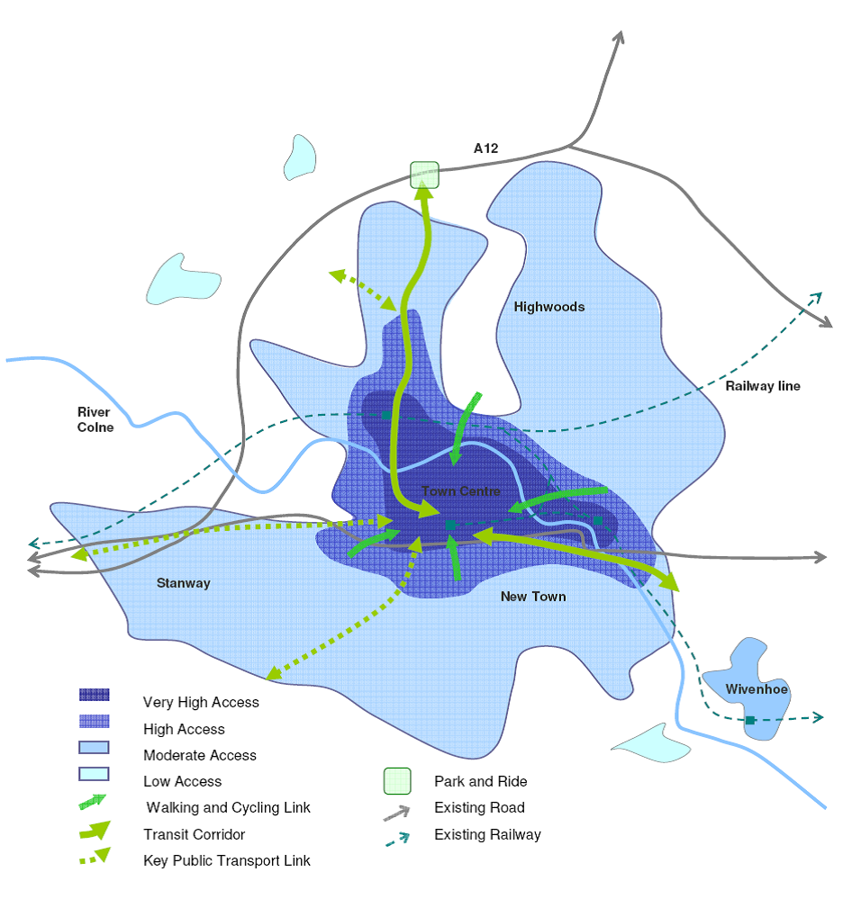 The Transport Strategy will also seek to create attractive and high quality gateways to Colchester to create a prestigious regional centre and promote sustainable travel behaviour. The main public transport interchanges, including North Station, Hythe Station and Town Station, will be regenerated to provide attractive ‘urban gateways’ to the Town Centre. The new A12 junction, including Park and Ride, will also provide a quality gateway for vehicular access to Colchester Town.